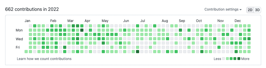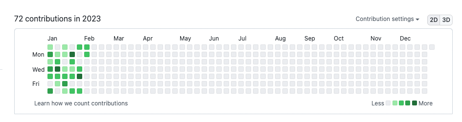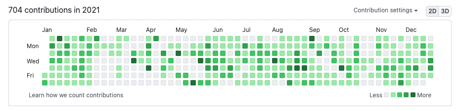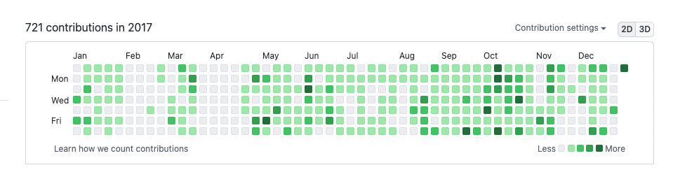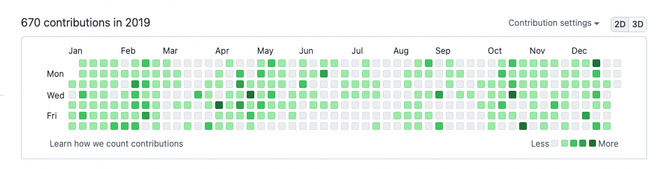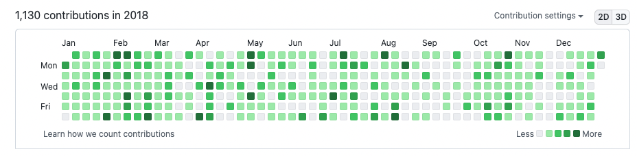 그래서 이길은 아주 외로운 길이 될 수 있다. 대부분의 사람들에게 돈 관련된 이야기를 꺼내면 안좋은 시선을 받거나 자랑한다고 시샘을 받기 일수며 크게 좋은소리를 못 듣는다. 그리고 위에도 말했지만 아무리 말해줘도 거의 실행하는 사람은 없다. 강제로 혼자 묵묵히 할 수 밖에없게 된다. 그래서 이런 이야기를 자랑스럽게 수다떨고 이야기 할 수 있는 사람은 현재는 사랑스러운 아내밖에 없다. 어쩌면 내가 이런 글을 작성하는 이유도 나와같은 비슷한 사람을 찾거나 있었으면 하는 이유에서 적는것일지도 모르겠다. 당연히 회사일 끝나고 또 개발을 한다는건 힘들다. 나 같은 경우 여전히 주말에도 개인앱 개발을 하는데, 예전을 떠올리면 아내랑 연애하던 시절 틈만나면 주말마다 카페가서 데이트 하자고 해놓고 옆에 아내가 있는데도 코딩을 했었다... 또 데이트하러와서 코딩만 하냐고 몇번이나 잔소리를 들었는지 모르겠다.(나 어떻게 결혼했냐) 아무튼 이런 꾸준함과 노력이 중요한 부분이라 생각한다. 최대한 하루에 한번이라도 코딩을 하기 위해 나름 노력을 했는데 그중 하나로 Github에 잔디를 열심히 채우려고 했다.