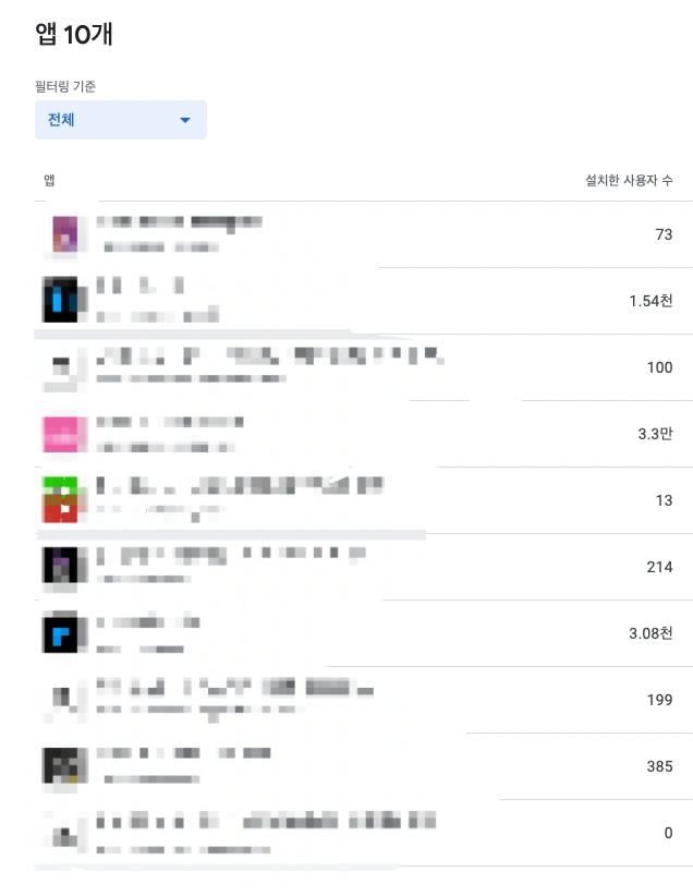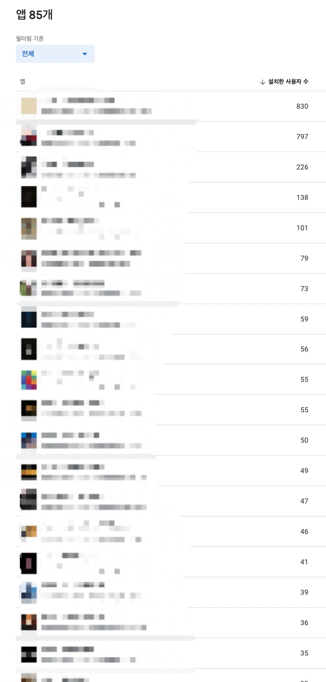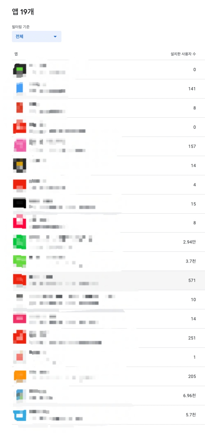 5년동안 153개의 앱을 출시했다. 보면 망한 앱들도 많고(사용자가 0인 앱) 사용자가 실 사용자가 몇만인 앱들도 있다. 시작은 "하루에 1달러 라도 버는 앱을 100개 만들면 하루에 100달러를 벌 수 있지 않을까?"라는 막연한 생각으로 하나둘씩 만들기 시작했는데 어느덧 시간이 흐르고 보니 150개를 넘어가고 있다. 정말로 하루에 1달러씩 꾸준히 벌어주는 앱들도 생겨나기 시작했고, 현재는 꽤나 오랜시간 안정적인 수입 패시브인컴이 되었다.
