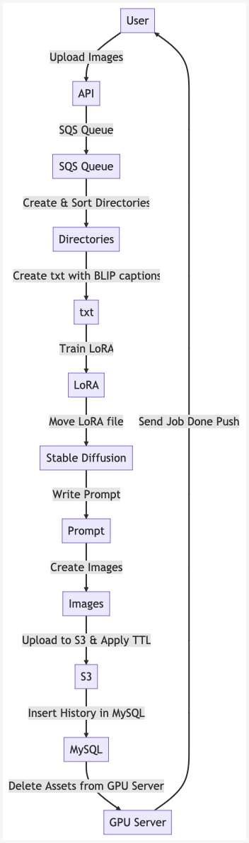 8. Upload the image and LoRA file to S3. You will also need to insert a history for the user in MySQL.