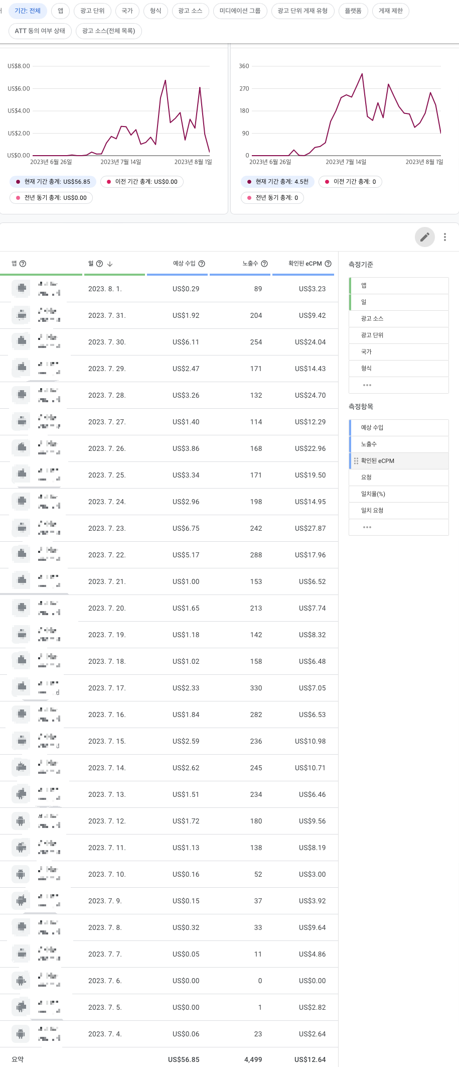 위에서 만든 앱 3달 경과 후 수익 보기
