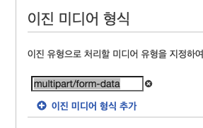 3. 가장 하단에 있는 이진 미디어 형식에 multipart/form-data 형식 추가