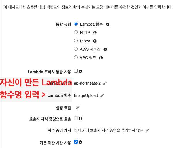 5. Lambda에서 데이터를 받아주기 위해 Lambda 함수를 연결 해줍니다.