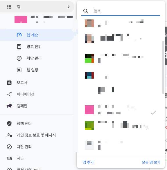 1. 우선 Admob 화면으로 이동후 관리중인 앱을 선택합니다.