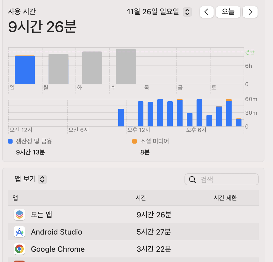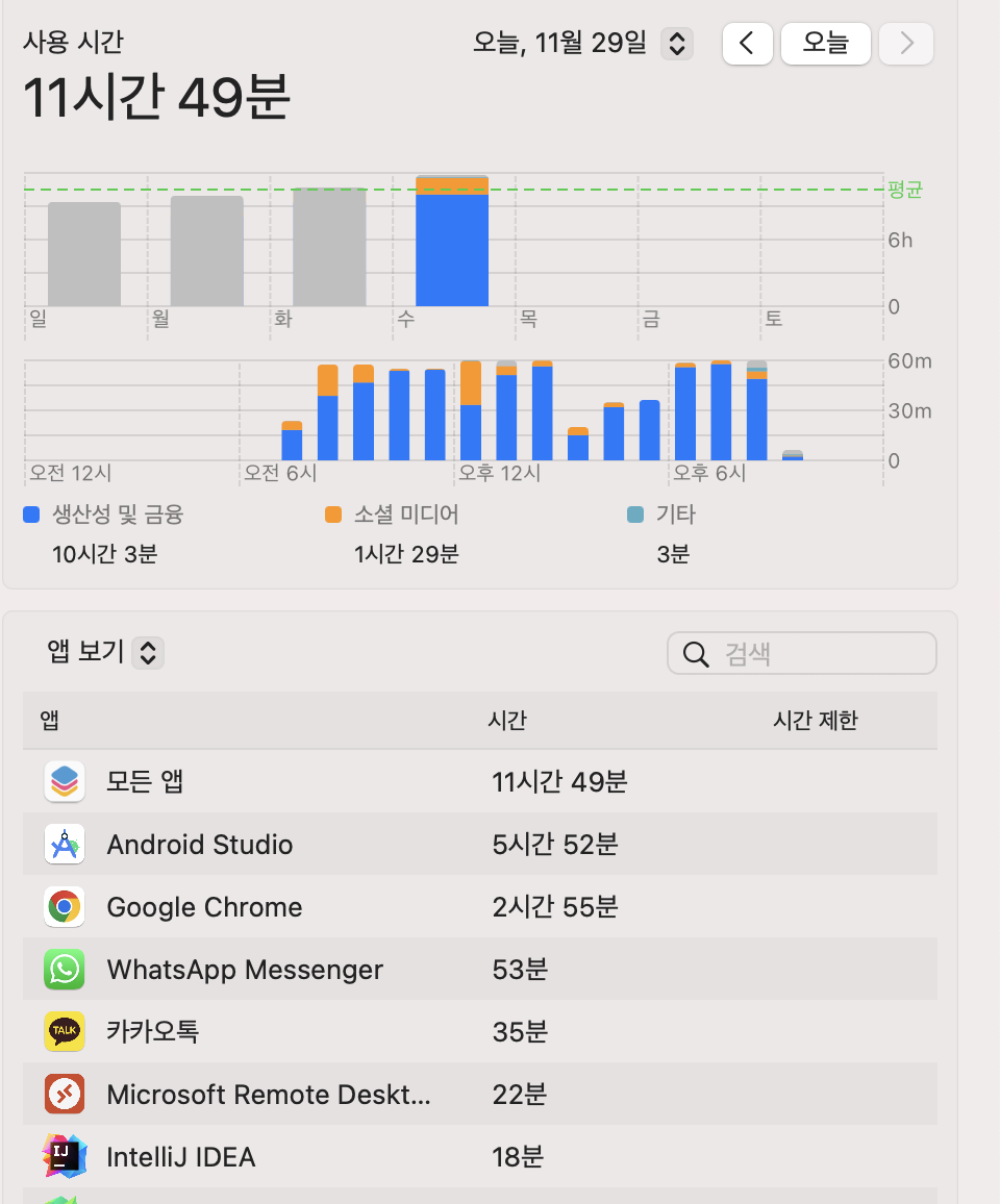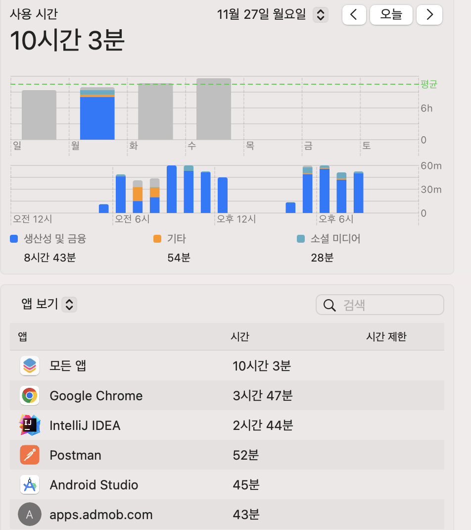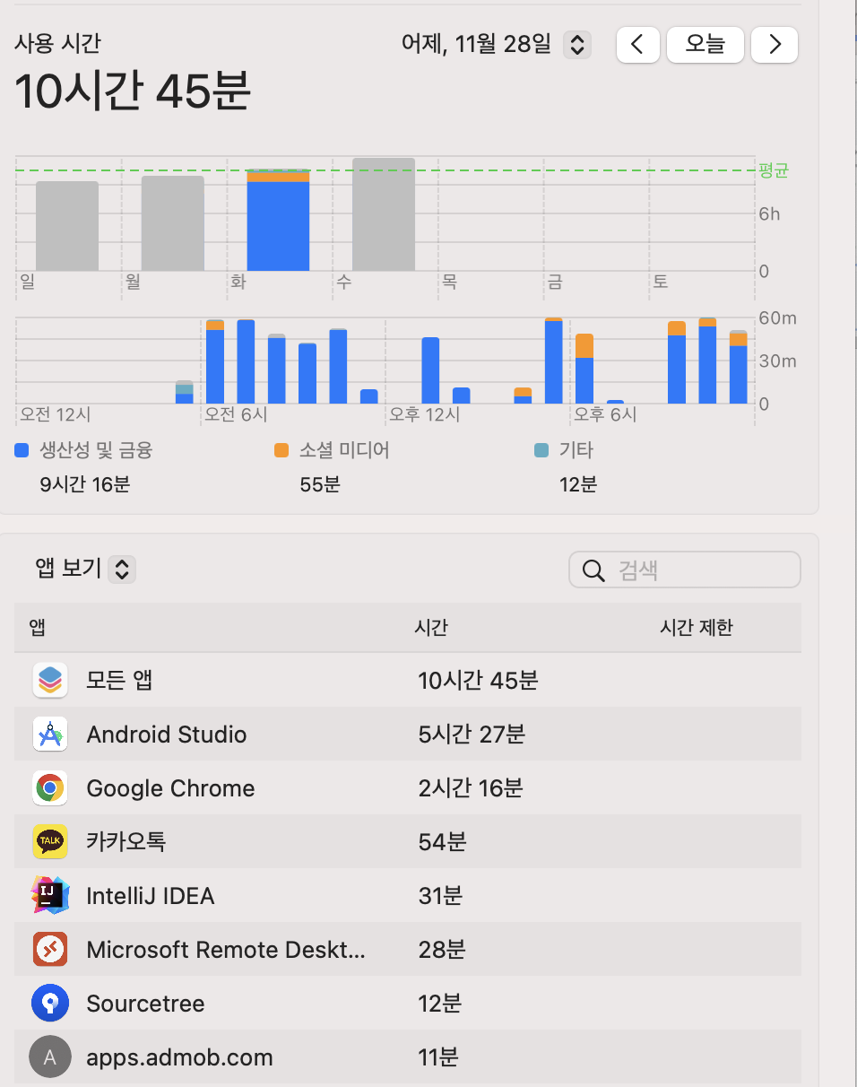 문득 하루얼마나 코딩하는지 궁금해서 맥북에서 확인했더니 아래와 같았다.