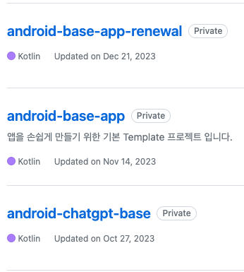 아래 2개의 사진들을 상세히 공개할수는 없어서 블러처리 하였지만, 앱, 서버 모두 필요한 범용적인 기능들을 왠만하면 모듈화를 진행하였고, 간단하게 한두줄이면 필요한 기능이 뿅하고 생성, 삭제될 수 있도록 구현하였습니다. 그리고 안드로이드의 경우 기본 템플릿 베이스 앱을 만들어두고 Git에서 관리하고 있으며, 여기에 많은 기능들이 들어가 있어서 전혀다른 신규 앱을 만들더라도 빠르게 만들 수 있게 됩니다.