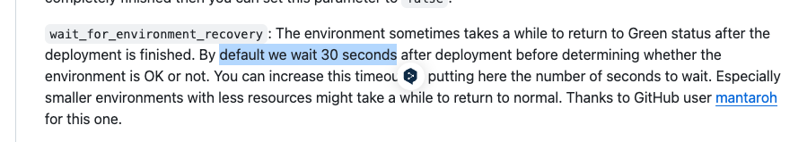 wait_for_environment_recovery 설정 값을 추가하면 된다고 적혀 있고, 기본 값은 30sec으로 잡혀있는 것을 확인.