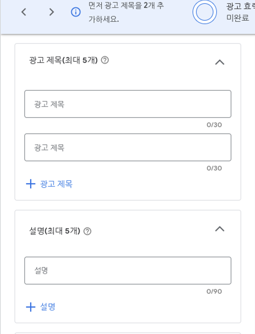 6. 광고 제목, 설명, 사진, 동영상 등을 입력하기