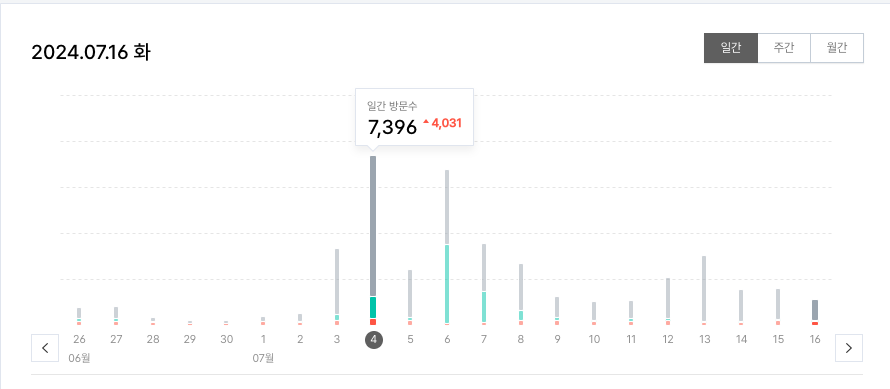 일과 삶의 균형을 찾으며, 더 나은 미래를 향해 나아가고 있다. 그리고 이 과정에서 예상치 못한 즐거움도 발견했다. 글쓰기에 재미를 느끼게 되어 블로그를 열심히 운영하던 중, 갑자기 찾아온 방문자 수 급증 사건을 겪으며 SNS의 힘을 실감하게 되었다. "개인앱 300개 만들고 퇴사합니다"라는 글이 여러 SNS와 단톡방에서 바이럴 되면서, 블로그를 시작한 이래 처음으로 '떡상' 그래프를 목격하게 된 것이다.