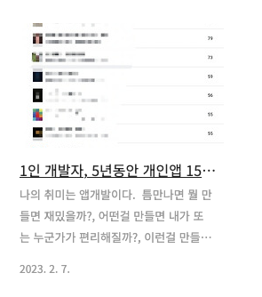 생각에 생각이 꼬리를 물고 이어져 밤잠을 설치는 날들이 많아지면서 "내가 잘 하고 있는지는 모르지만, 나의 지식도 조금씩 공유도 하고 혹시모를 나와 같은 사람을 찾거나 그런 사람이 생겨나면 좋겠다"라는 마음으로 1인 개발자, 5년동안 개인앱 150개 이상 만들기 라는 글을 작성했다.