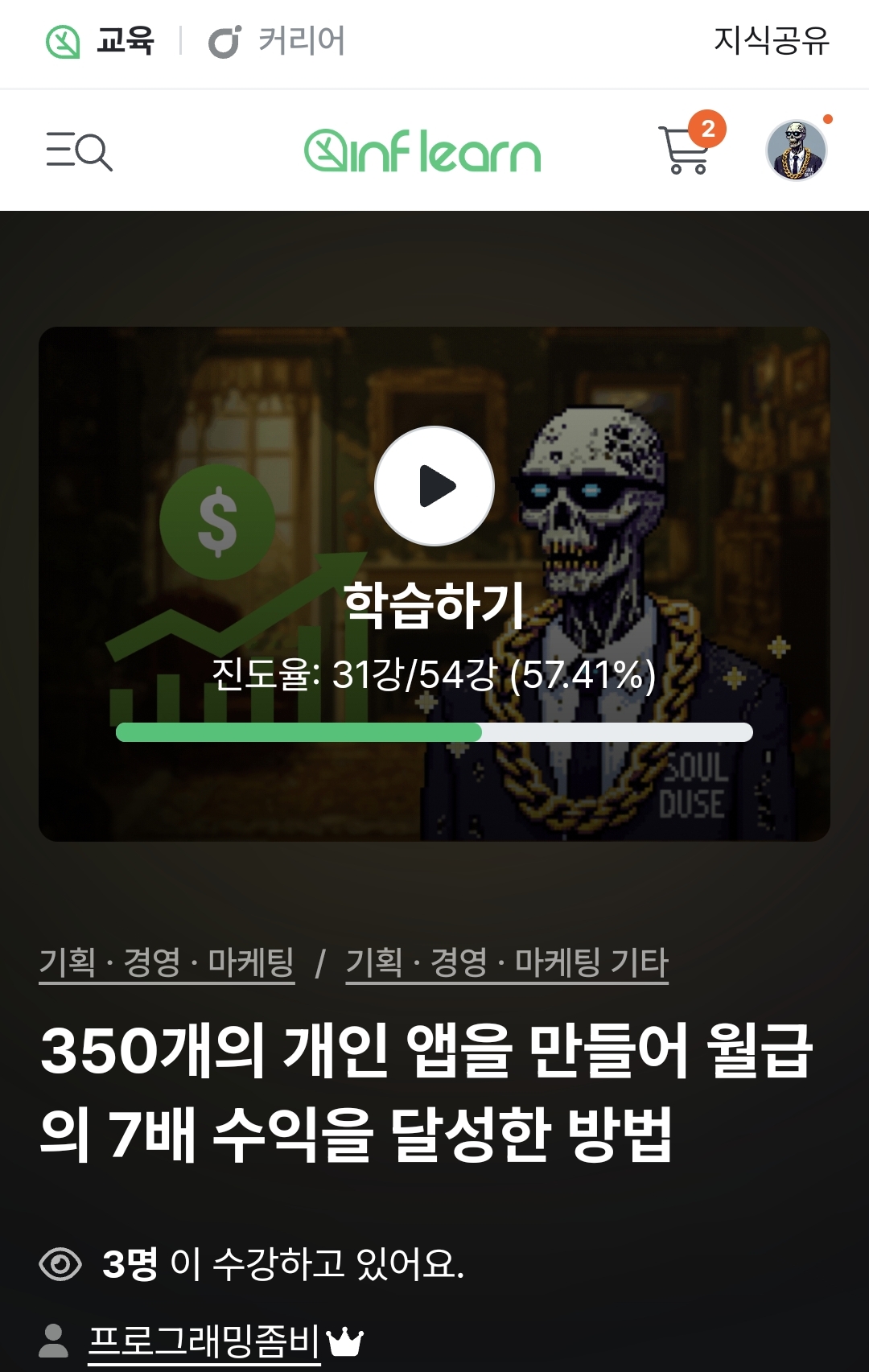 350개의 개인 앱을 만들어 월급의 7배 수익을 달성한 방법 강의 | 프로그래밍좀비 - 인프런