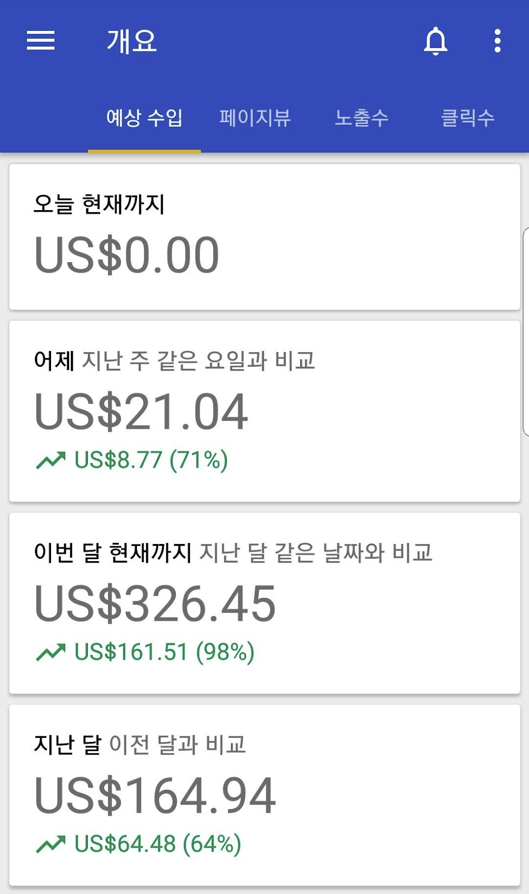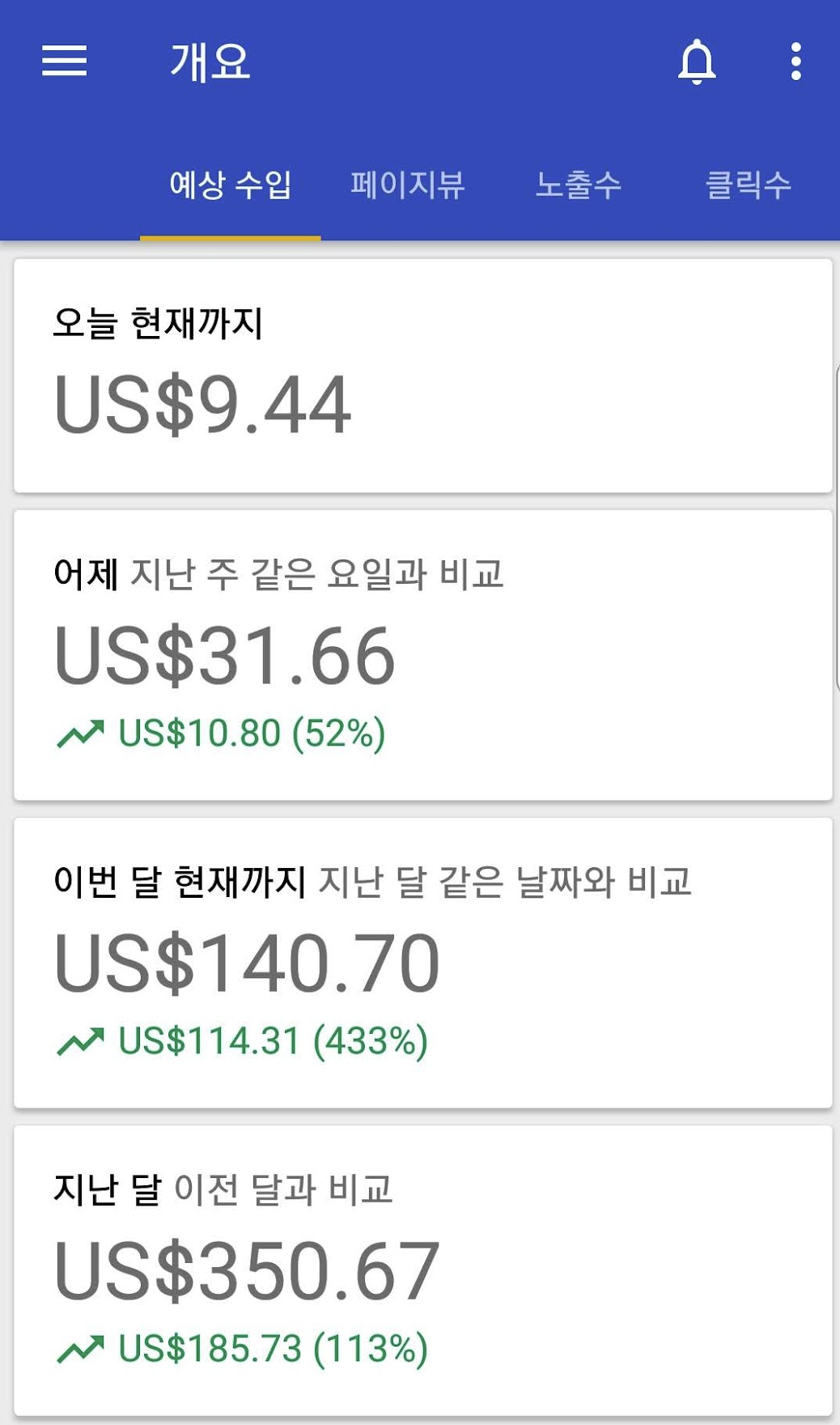 처음 몇달간은 수익이 전혀 없다가 계속 하다보니 야금야금 수익이 증가하더군요, 하루 $0.5 수익이 $1가 되고 $2~3로 증가하기 시작했습니다. 당시를 떠올려보면 정말 즐거웠는데 "이틀 수익 모으면 내가 좋아하는 커피한잔 사먹을수 있네?", "한달이면 치킨 두번이나 먹을수 있잖아?"라 생각하며 엄청 행복해 했던 기억이 납니다.
