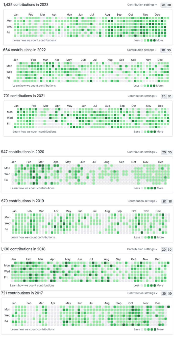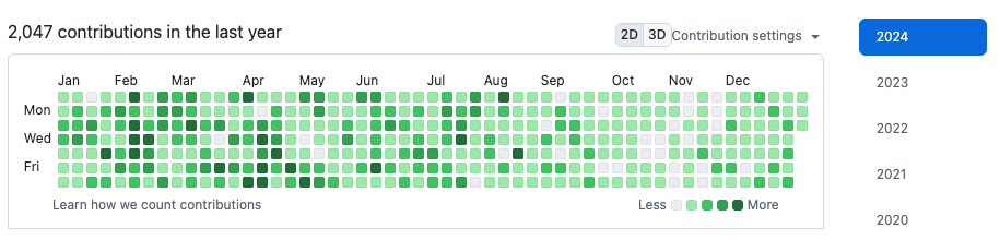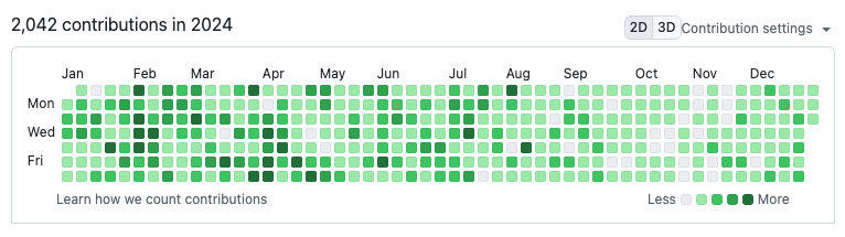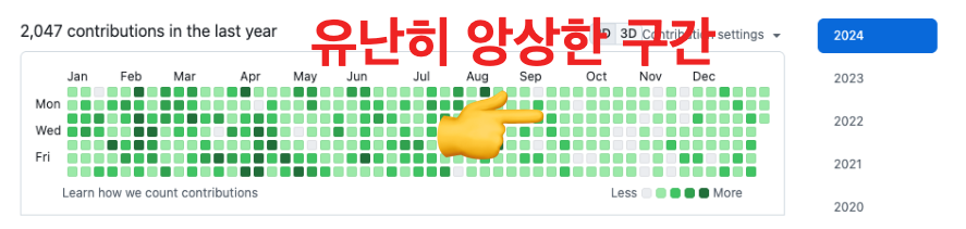깃헙 활동량이 역대 최고치를 기록한 것은 제 노력의 결실을 가장 객관적으로 보여주는 지표였습니다. 매일의 작은 커밋들이 모여 큰 성과를 이루어냈다는 점이 하나의 큰 보람으로 남았습니다. 다른 해에 비해 압도적인 차이를 보여준 커밋 그래프를 보면서, 정말 열심히 달려온 한 해였다는 것을 다시 한번 실감하게 됩니다.