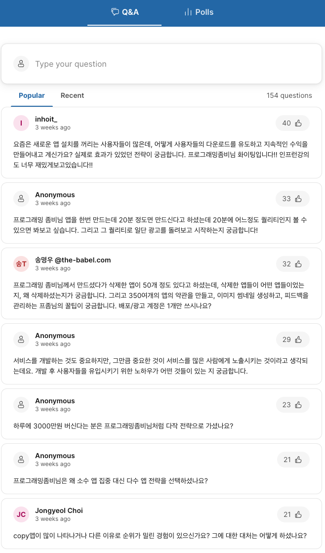 그리고 정말 많은 분들이 좋은 질문들을 해주셨는데 많은 질문에 답변을 했지만, 시간 관계상 모든 질문에 대한 답변을 못해드린 부분이 한편으로는 마음에 걸렸습니다. (이 부분은 조만간 날을 잡아 질문에 제가 답변 드릴 수 있는 부분은 모아서 블로그를 포스팅하도록 하겠습니다. 😄)