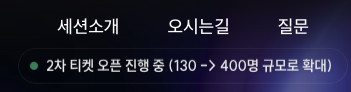발표는 처음에는 100명 정도 규모라서 그것 또한 굉장히 부담되고 상상만 해도 떨렸는데, 생각보다 너무 많은 분들이 컨퍼런스에 참여해주셨고 심지어 참여 대기 인원이 참여자보다 더 많아지는 상황이 펼쳐지는 바람에 더 큰 강연장으로 대체 이관하여 400명 규모로 강연이 커지게 되었습니다. 😱