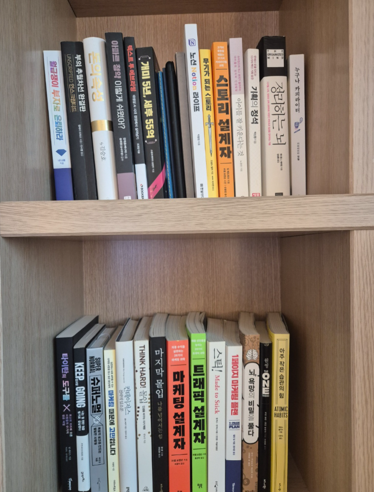 개인 앱으로 수익을 내기 위해서는 기획부터 개발, 마케팅, 디자인까지 모든 것을 혼자 해내야 했습니다. 어느 하나라도 제대로 되지 않으면 서비스 출시가 멈춰버리거나 그저 그런 서비스가 되기 때문에, 부족한 부분은 유튜브나 책을 통해 끊임없이 학습했습니다. 그래서인지 제 책장은 처음에는 개발 서적으로 가득했지만, 시간이 흐르면서 돈을 버는 방법, 마케팅, 심리학 관련 서적들로 채워져 갔습니다.