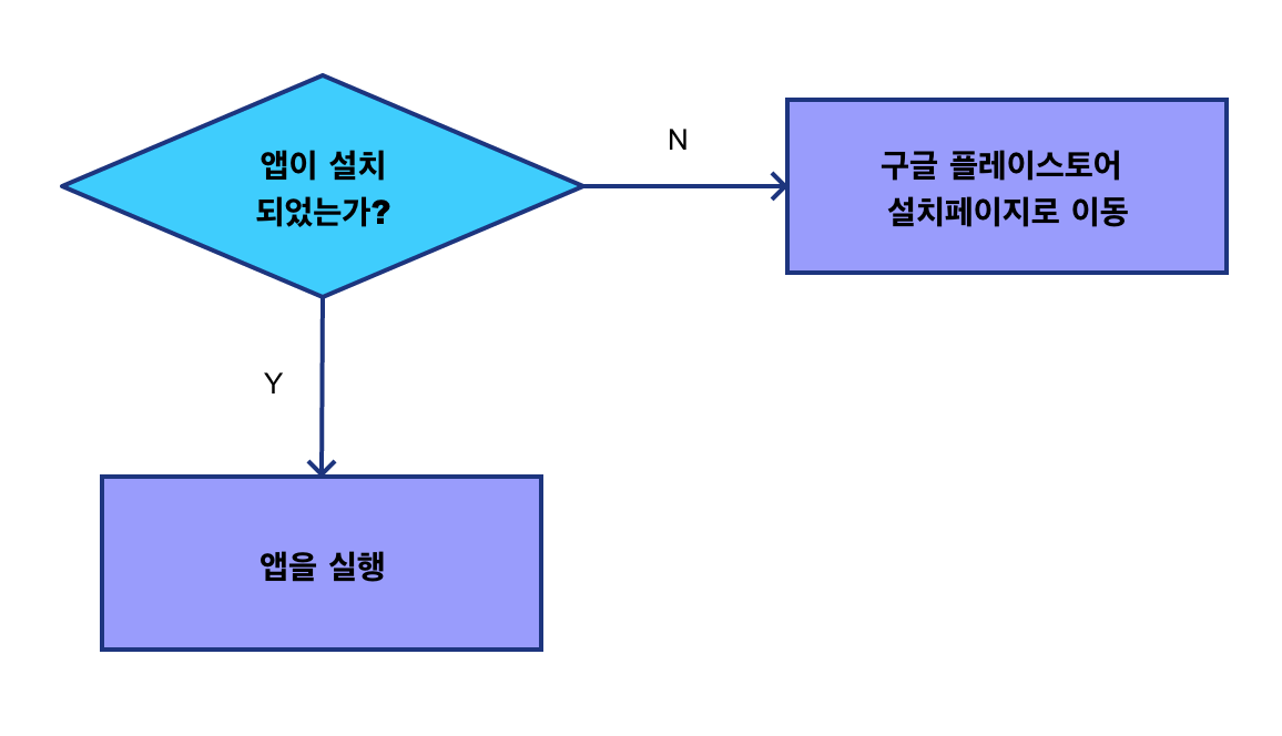 - 설치가 되어있지 않다면 구글 플레이스토어에 그 앱의 설치화면으로 보낸다.