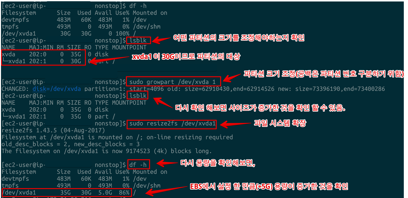 볼륨 크기 수정 후 콘솔에서 해줄 추가작업