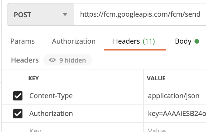 Endpoint : https://fcm.googleapis.com/fcm/send