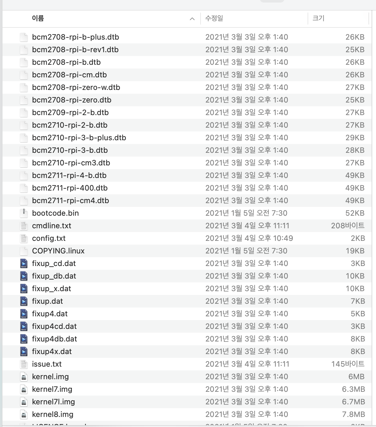 설치가 완료되고 SD Card를 살펴보면 아래와 같이 많은 파일들이 생성된 것을 확인 할 수 있습니다.